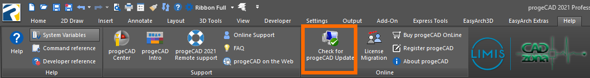 Ukoliko niste sigurni da li je progeCAD ažuriran, pokrenite proveru ažuriranja preko komande Help/Check for progeCAD Update: